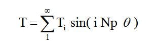 To deal with all the magnets, as the magnetic circuit has been assumed linear, it is possible to add all the corresponding contributions. Let Np be the number of poles; then, if the magnets are evenly distributed and spaced by   , the cogging torque is given by:
