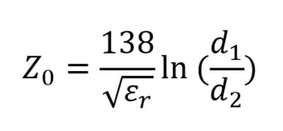 For a coaxial cable the characteristic impedance is given by: