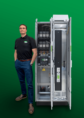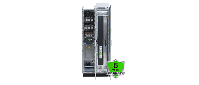 DFS garantisce prestazioni ineguagliabili nel minimo ingombro, erogando 500 kW di potenza in un armadio largo 800 mm con protezione inclusa. Inoltre, le unità DFS possono essere collegate in parallelo per raggiungere potenze fino a 2,8 MW, per soddisfare eventuali esigenze di espansione future.